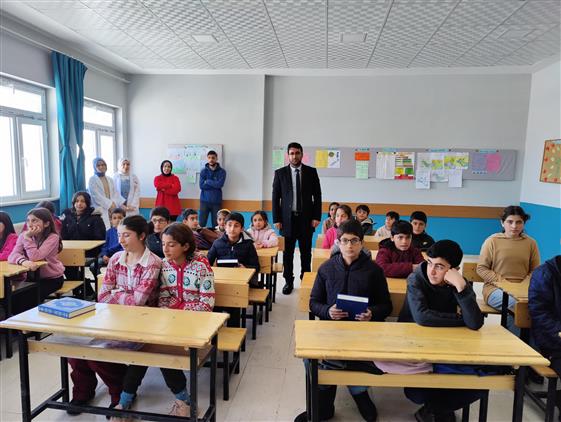 Dini ve milli değerlerin öğrenilmesi, korunması ve gelecek nesillere aktarılmasının önemi ile ilgili söyleşi gerçekleştiren İlçe Müftümüz, öğrencilere Kur’an-ı Kerim hediye etti.