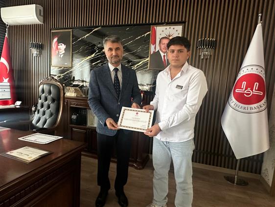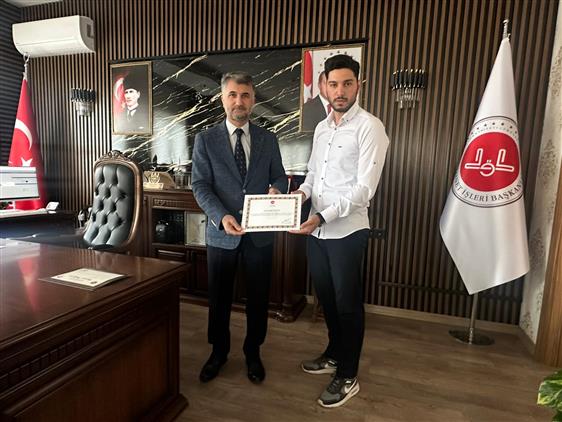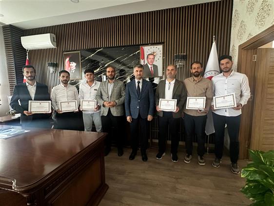 İl Müftüsü Yavuz, 2025 yılı ramazan ayında teravih namazını hatimle kıldıran Süphan Akarsu, Ömer Bozyel, Mesut Söylemez,Yasin Akarsu, Emre Abdan, Halis Öz, Emre Sezen Veysel Tekin ve Enes Kaya'ya, Başkan Erbaş imzalı teşekkür belgelerini takdim etti.
