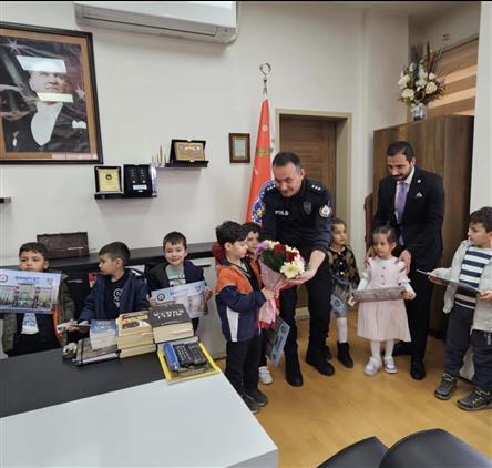 Müftülüğümüz uhdesinde eğitimlerini sürdüren Kültür Mahallesi ve Hz. Osman Camii 4-6 Yaş Grubu Kur’an Kurslarında okumakta olan minik Kur’an bülbüllerimiz, 6-12 Nisan tarihleri arasında kutlanan ‘Polis Haftası’ münasebetiyle İlçe Emniyet Müdür V. Başkomiser Sezer YALÇIN beyefendiyi ziyaret ederek kendisinin ve şahsında tüm personelin haftasını kutladılar.